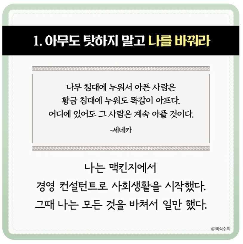 ✔ 실용적인 조언과 철학적 원칙이 조화를 이루는 점이 좋음!