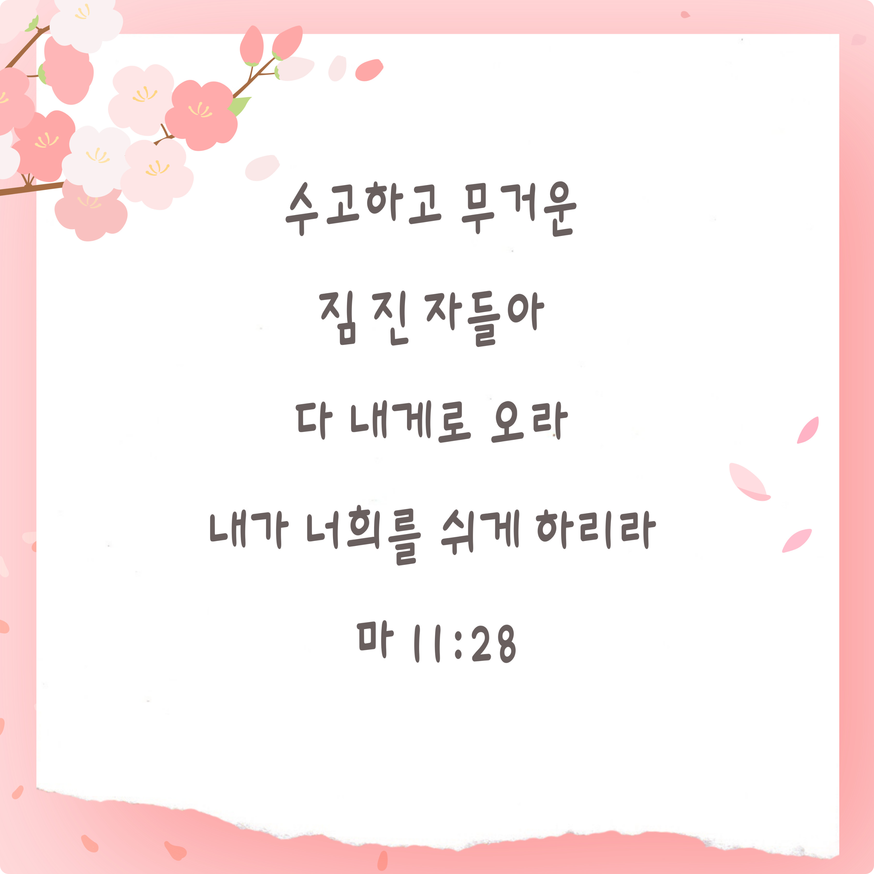#마태복음11장28절 #수고하고무거운짐 #예수님의초대 #오늘의말씀 #감성묵상 #기독교블로그 #회복의시간 #예수님품안에서 #쉼이있는신앙 #말씀캘리그라피 #믿음의쉼표 #위로의말씀 #쉼과회복 #영적재충전 #기도하는삶 #말씀으로사는삶 #감성신앙 #오늘의묵상 #지친당신에게 #하나님과함께