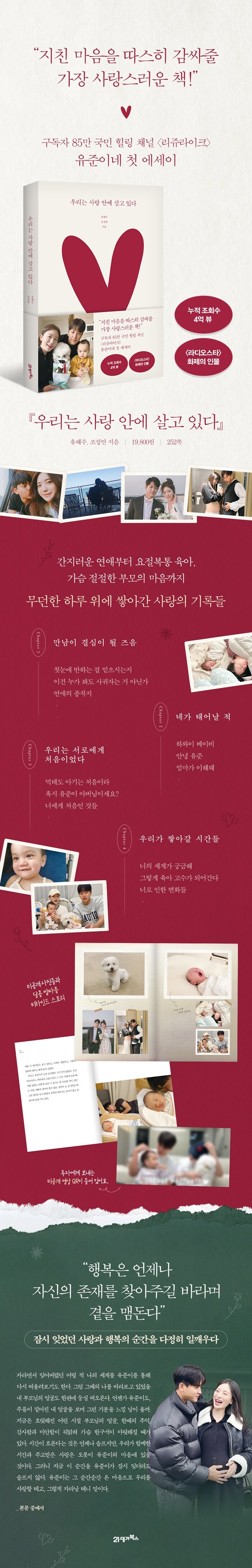 ‘우리는 사랑 안에 살고 있다’는 단순한 에세이가 아니다. 이 책은 독자로 하여금 자신의 삶을 돌아보게 만들고, 우리가 매일 잊고 사는 사랑의 가치를 상기시킨다. 평범한 부부의 진솔한 이야기가 이렇게나 큰 울림을 줄 줄은 몰랐다.