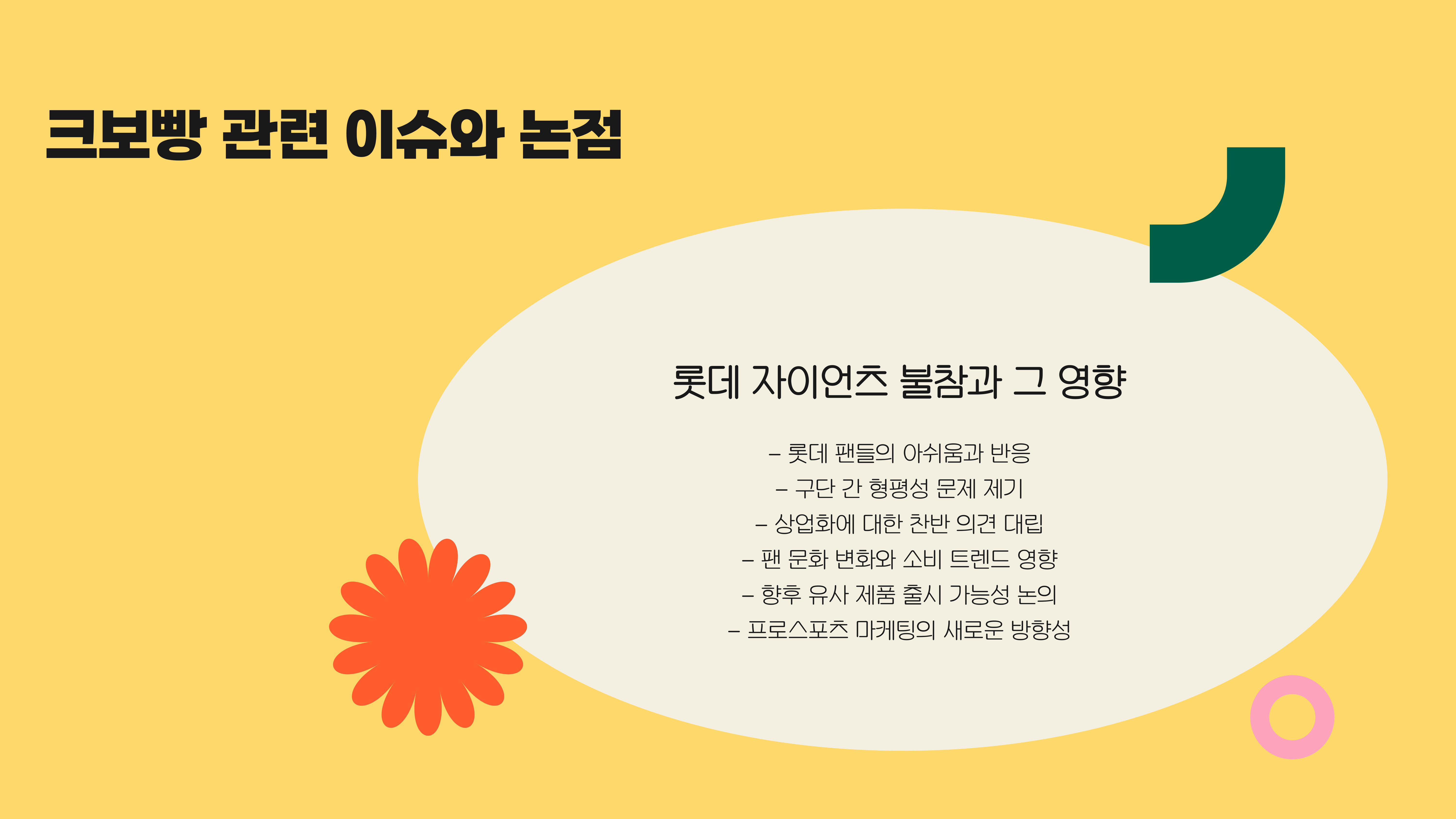 1. 롯데그룹의 계열사 '롯데웰푸드'가 자체 제빵 브랜드 '기린'을 보유하고 있어서 경쟁사와의 협업이 어려움