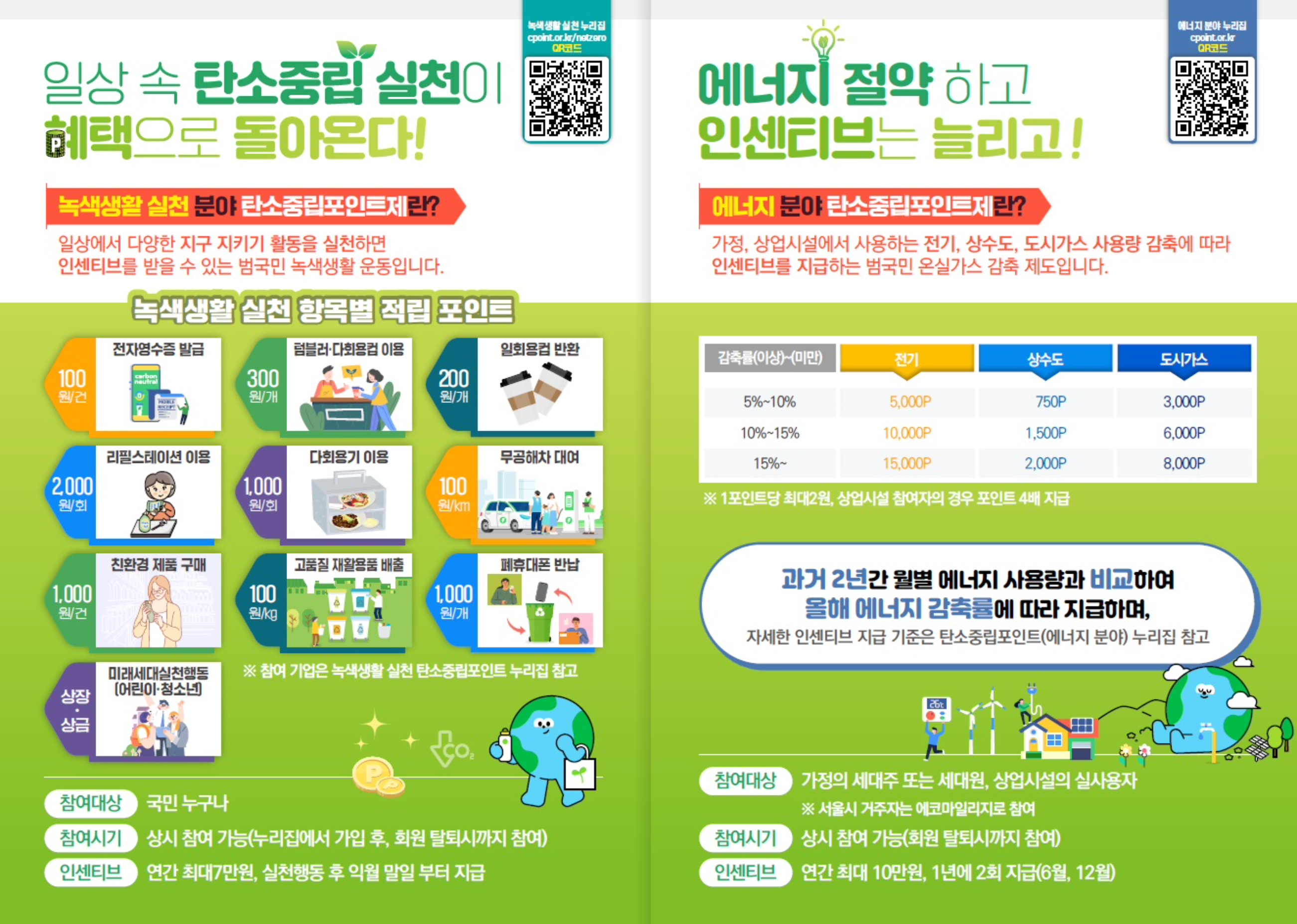 👉 자동차를 덜 타거나, 전기·수도·가스 사용량을 절약하면 포인트(현금 or 상품권)를 받을 수 있어요!