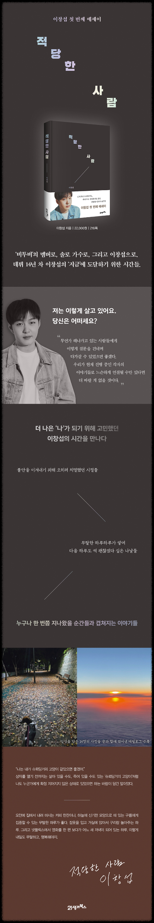 `지금 나는 적당한 사람일까.` 데뷔 14년 차 가수 이창섭의 ‘지금’에 도달하기 위한 시간들이창섭 첫 번째 에세이 출간아이돌 그룹 ‘비투비’ 멤버와 솔로 가수로, 뮤지션과 엔터테이너로 영