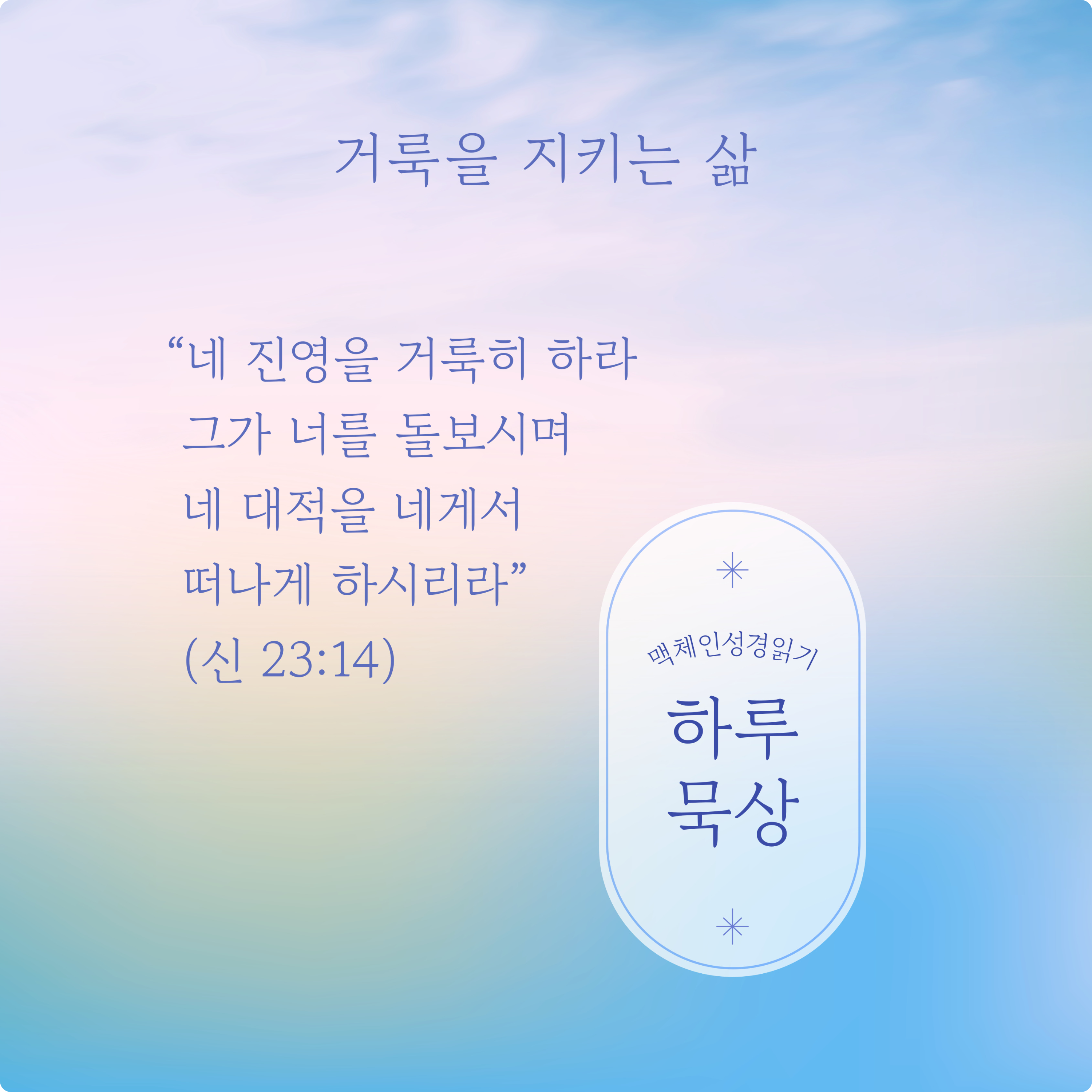 “네 진영을 거룩히 하라 그가 너를 돌보시며 네 대적을 네게서 떠나게 하시리라” (신 23:14)