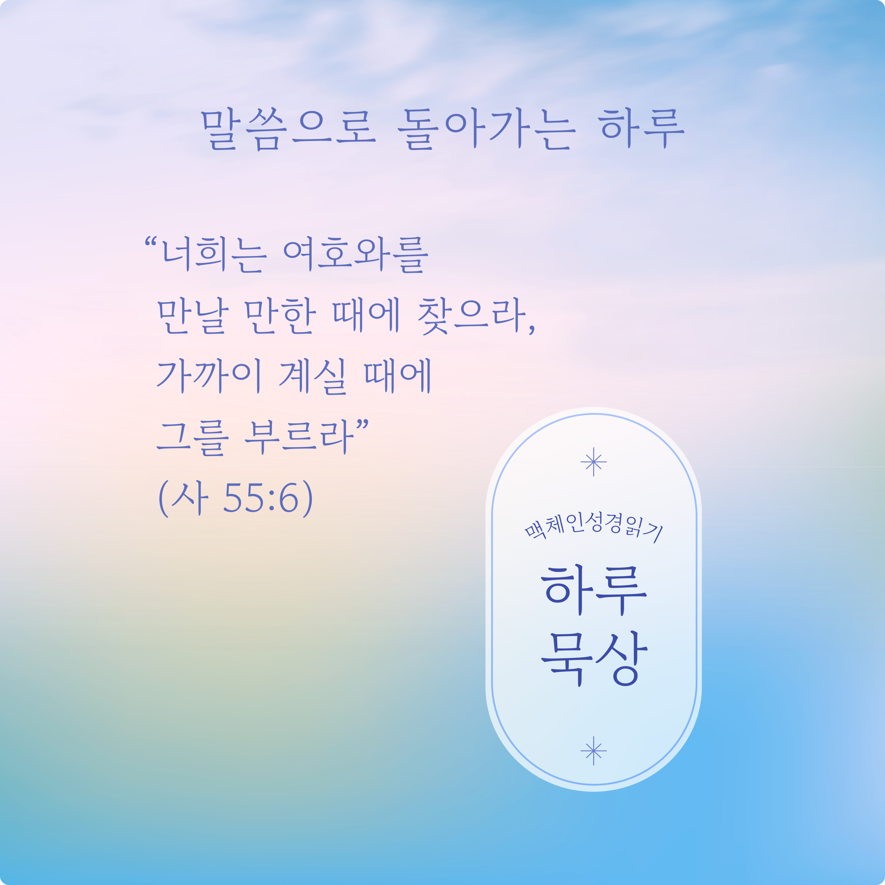 “너희는 여호와를 만날 만한 때에 찾으라, 가까이 계실 때에 그를 부르라.”
