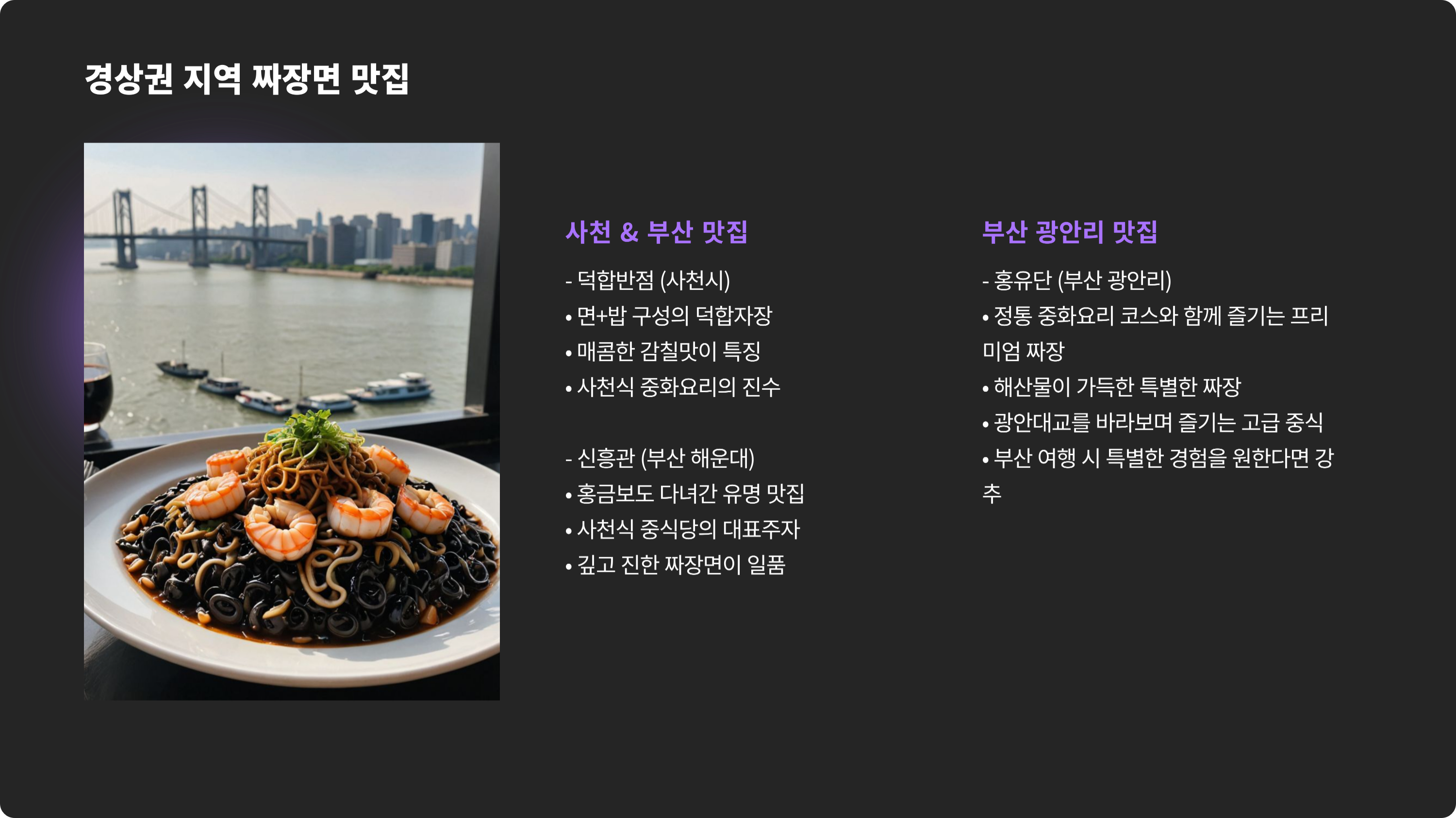이 리스트 속 한 그릇이 여러분의 ‘인생 짜장’이 되기를 바라며,