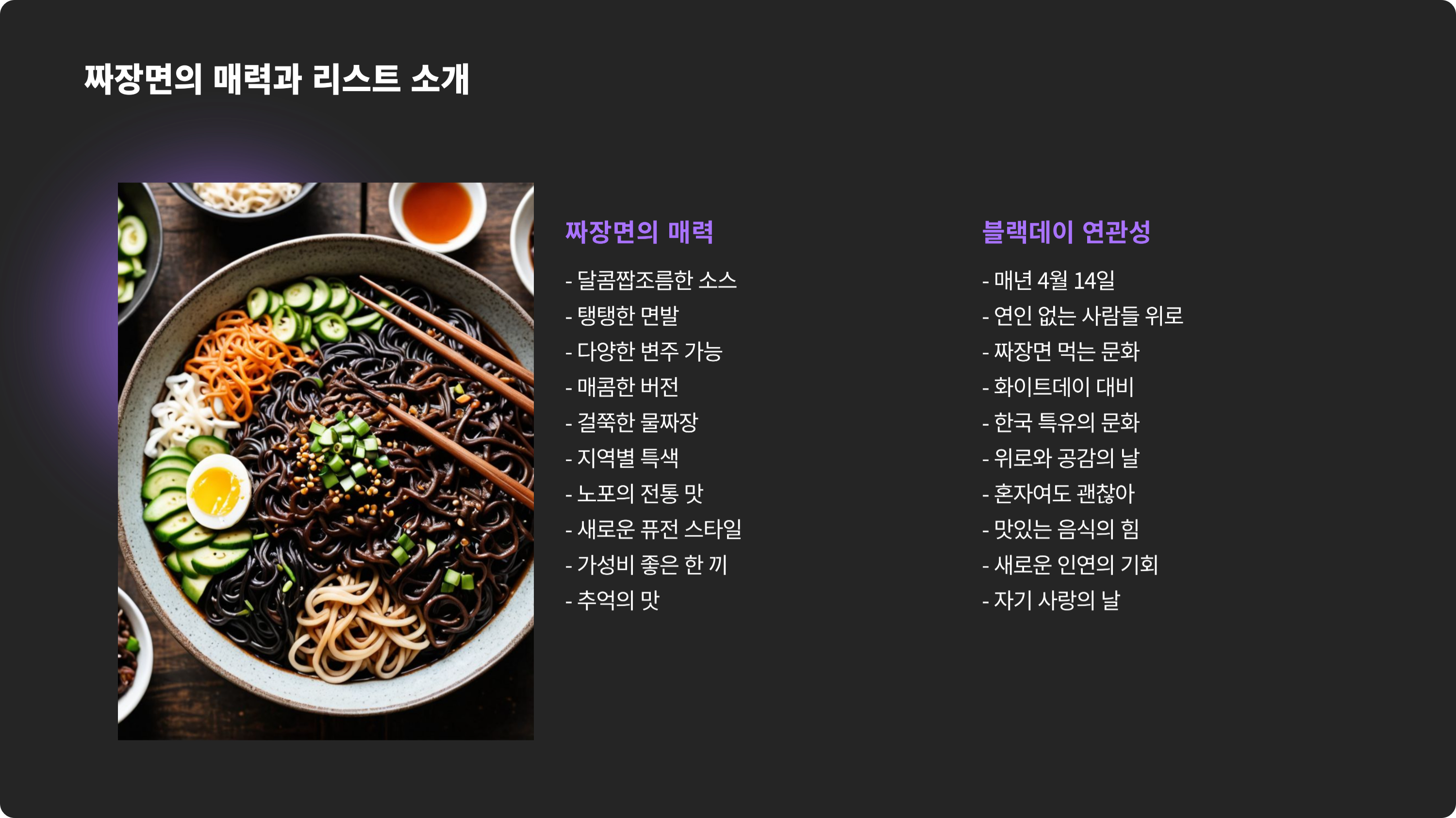 💔 연인 없어도 괜찮아! 4월 14일 ‘블랙데이’, 짜장면 한 그릇으로 위로받는 날 🍜 ---💭 “매년 4월 14일, 당신의 외로움도 짜장면 한 그릇으로 씻겨나갑니다.”---혹시 2월 14일엔 초콜릿을