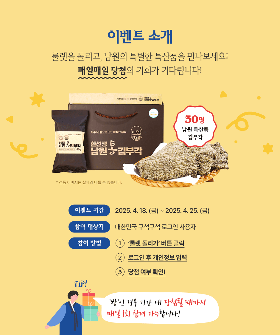 🎁 [이벤트 소식] 매일 30명에게 남원 특산품 김부각 증정🎉