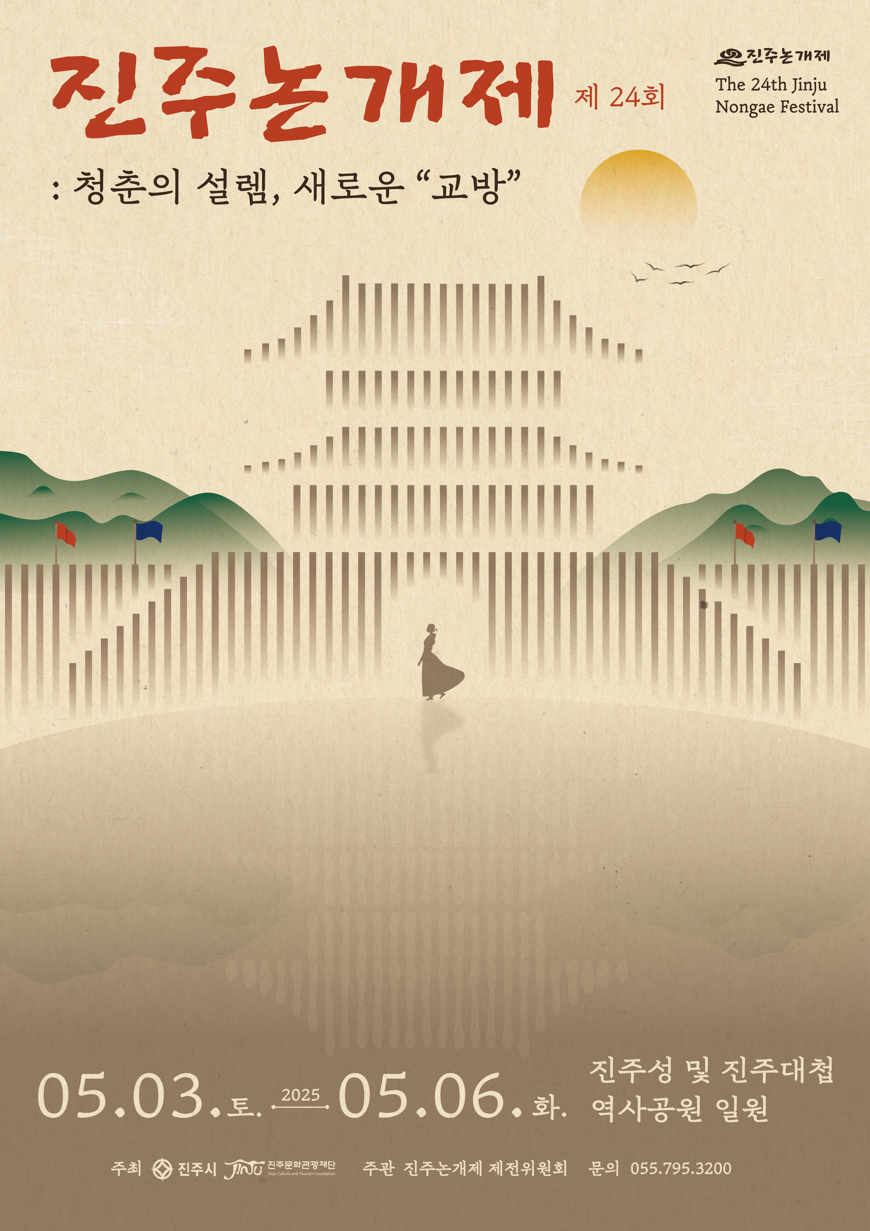 진주논개제는 ‘청춘의 설렘, 새로운 교방’이라는 주제로 기획되었습니다. 축제는 많은 사람이 함께 어우러져 즐길 때 더욱 빛이 납니다. 이에 진주검무 공연을 시민이 직접 참여하는 플래시