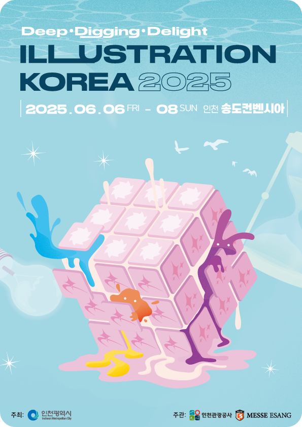 [2025 인천 일러스트코리아] 전시명: 2025 인천 일러스트코리아 전시 일정: 2025년 6월 6일(금) – 8일(일) 개최 장소: 인천 송도컨벤시아 전시 품목: 일러스트레이션, 캐릭터, 그래픽 디자인, 창작 굿