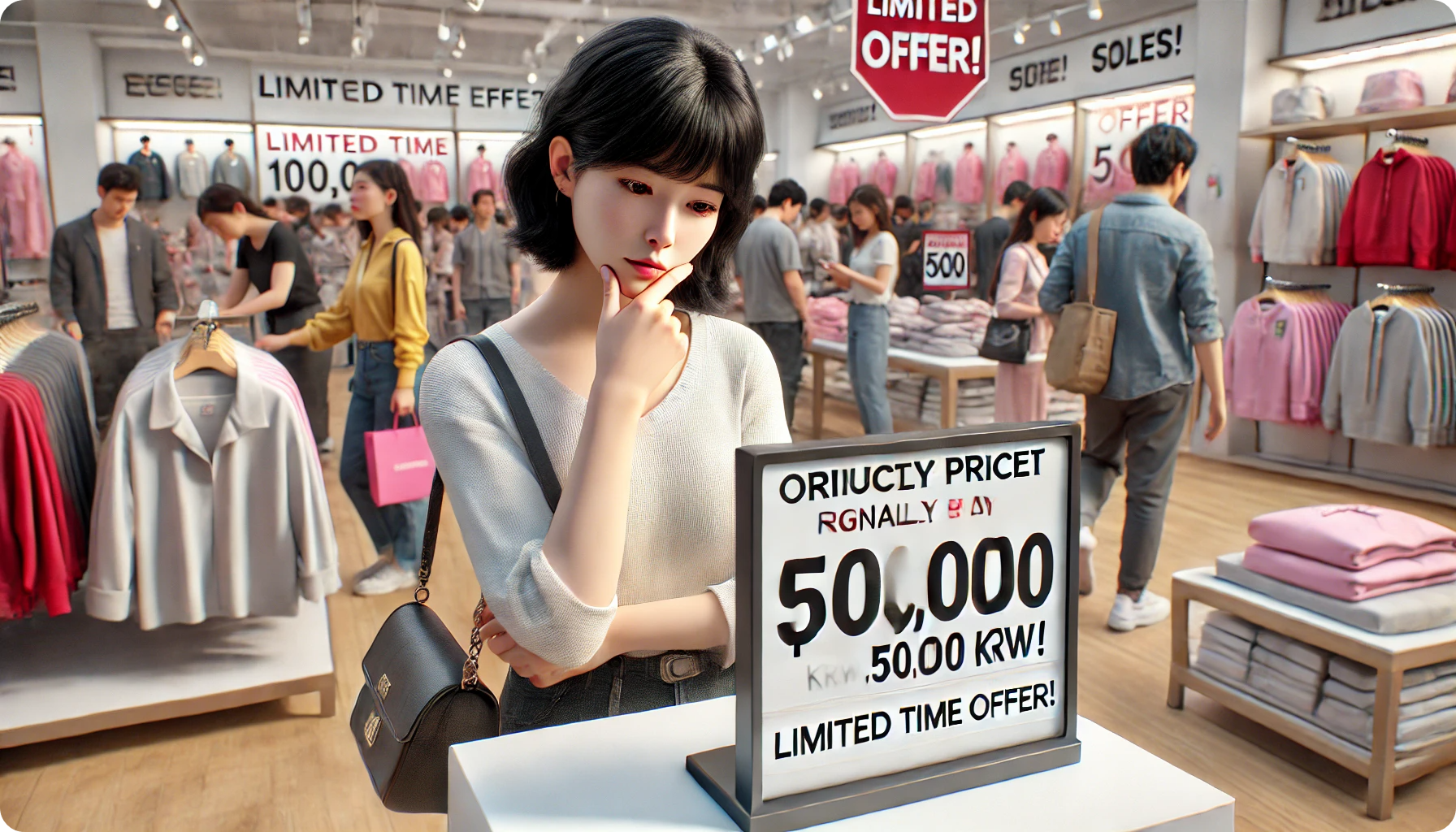 👉 "이 상품 원래 100,000원인데, 오늘만 50,000원!"