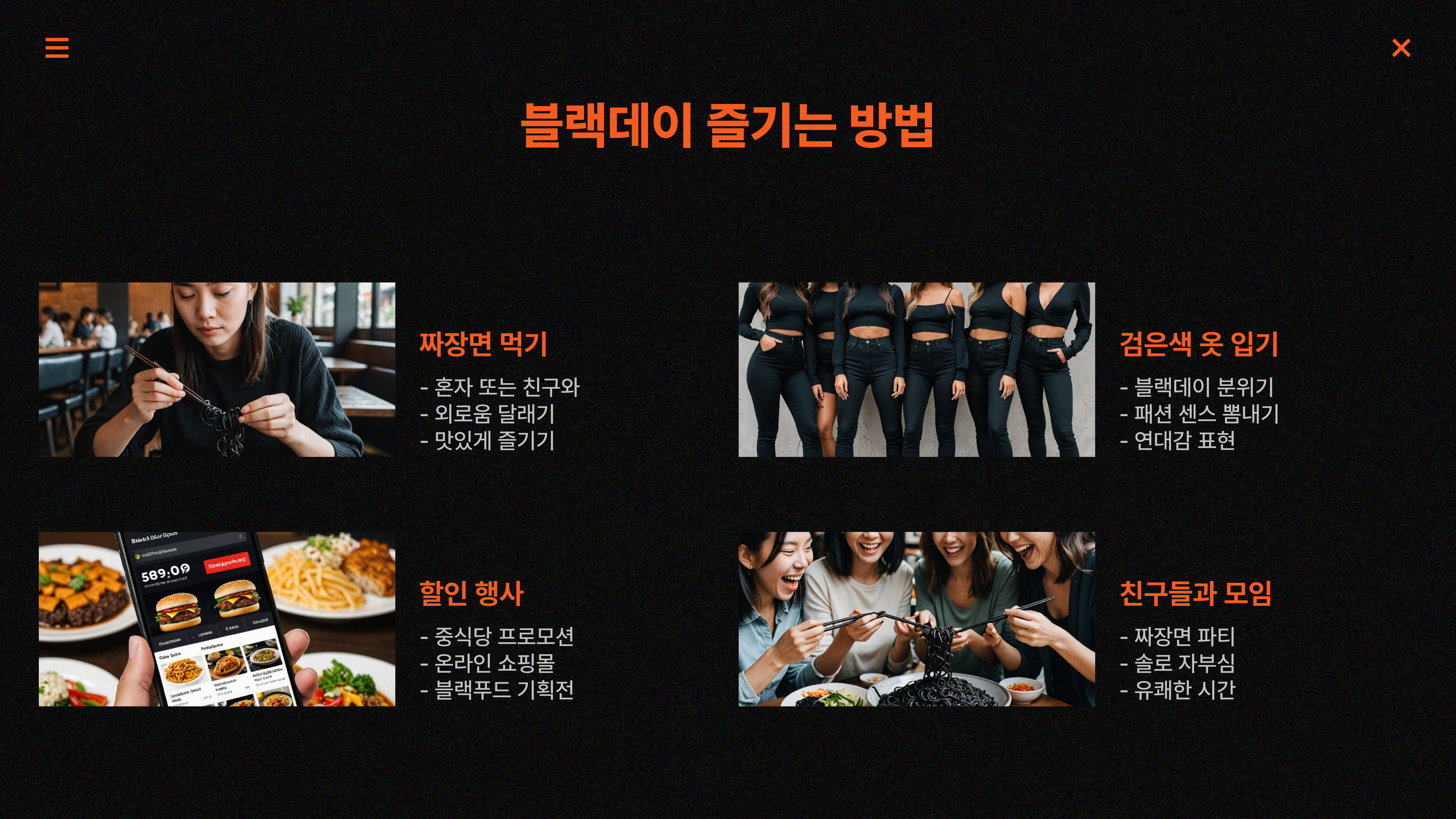 짜장면 할인, 블랙푸드 프로모션 등을 진행해요.
