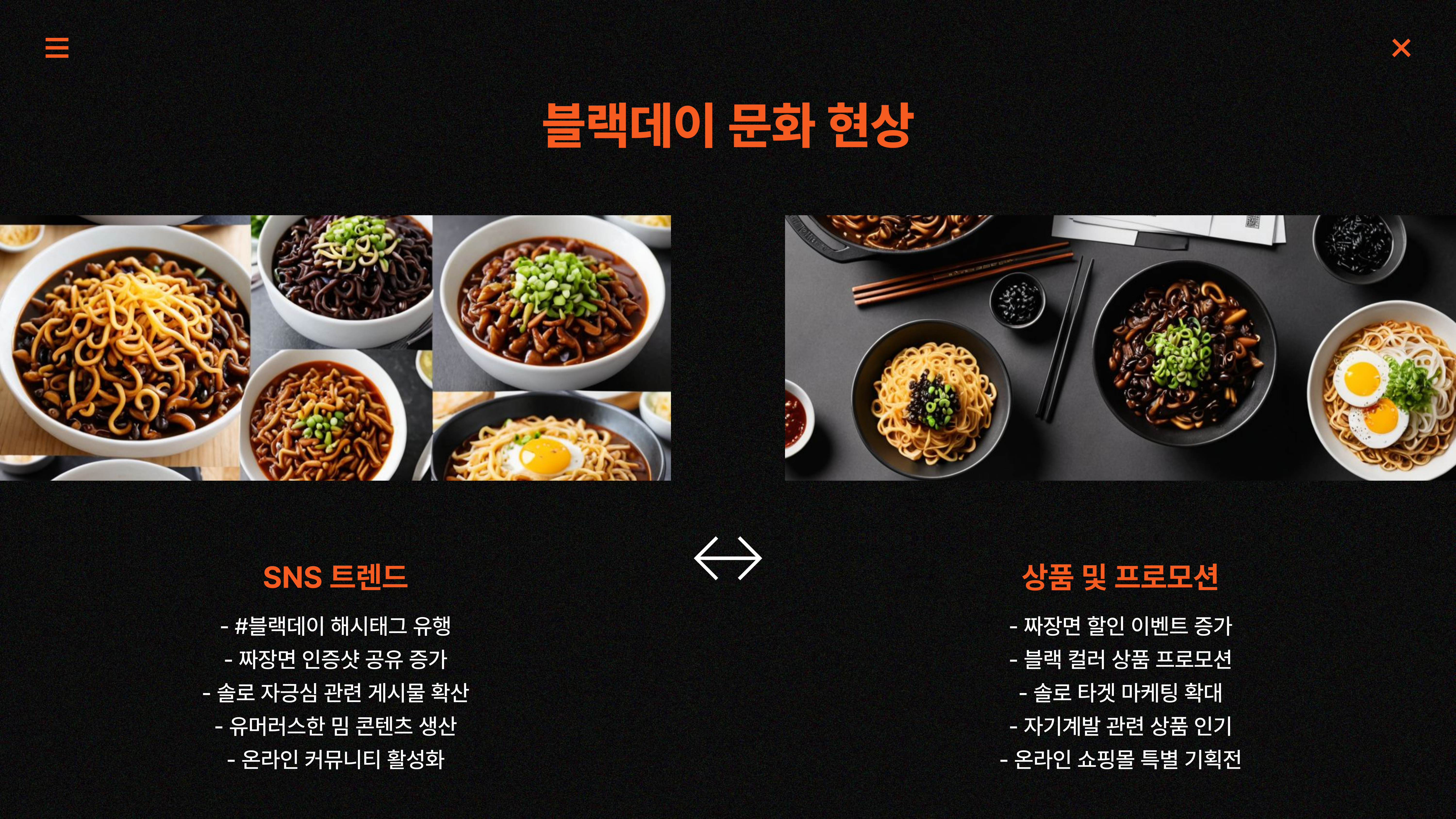 짜장면 할인, 블랙푸드 프로모션 등을 진행해요.