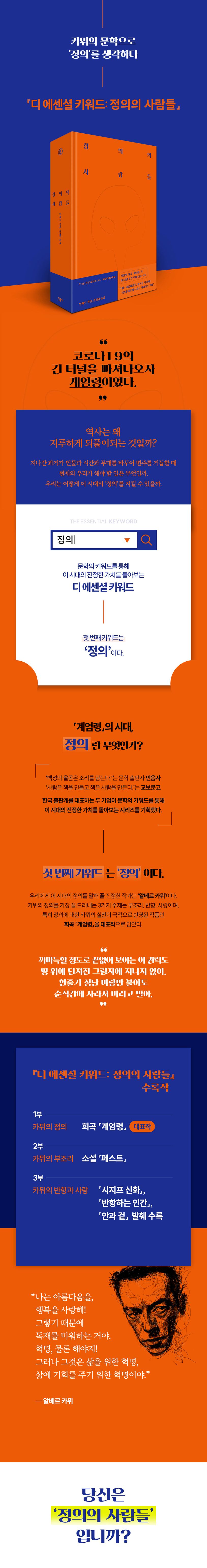 그 정의의 상징으로 알베르 카뮈를 선택한 건, 너무도 탁월한 선택이다.