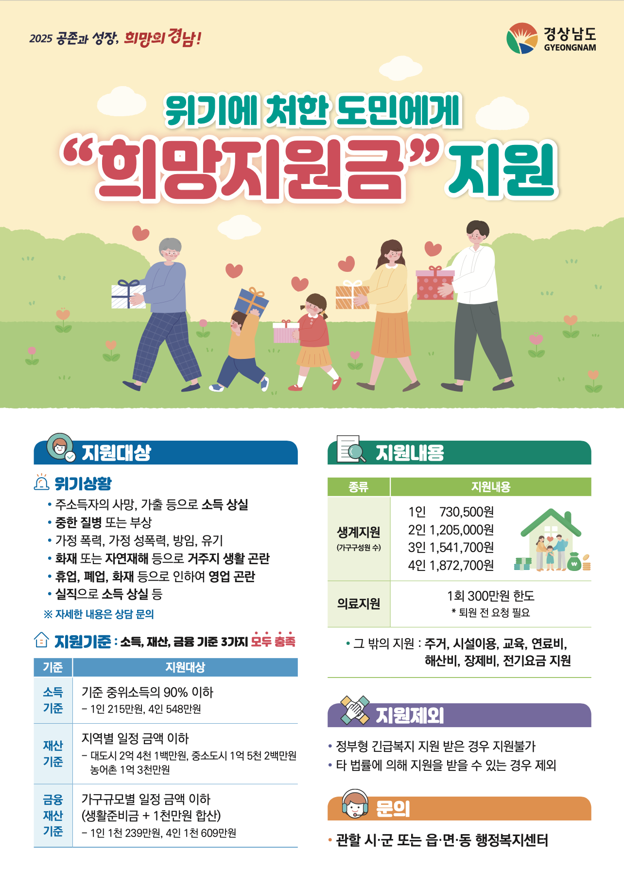 #경상남도 #희망지원금 #위기지원 #저소득층 #긴급복지 #생계지원 #의료지원 #주거비지원 #교육비지원 #전기요금지원 #정부지원금 #사회복지 #긴급지원 #경제적어려움 #복지정책 #복지제도 #경남복지 #가족복지 #경상남도청 #도민지원