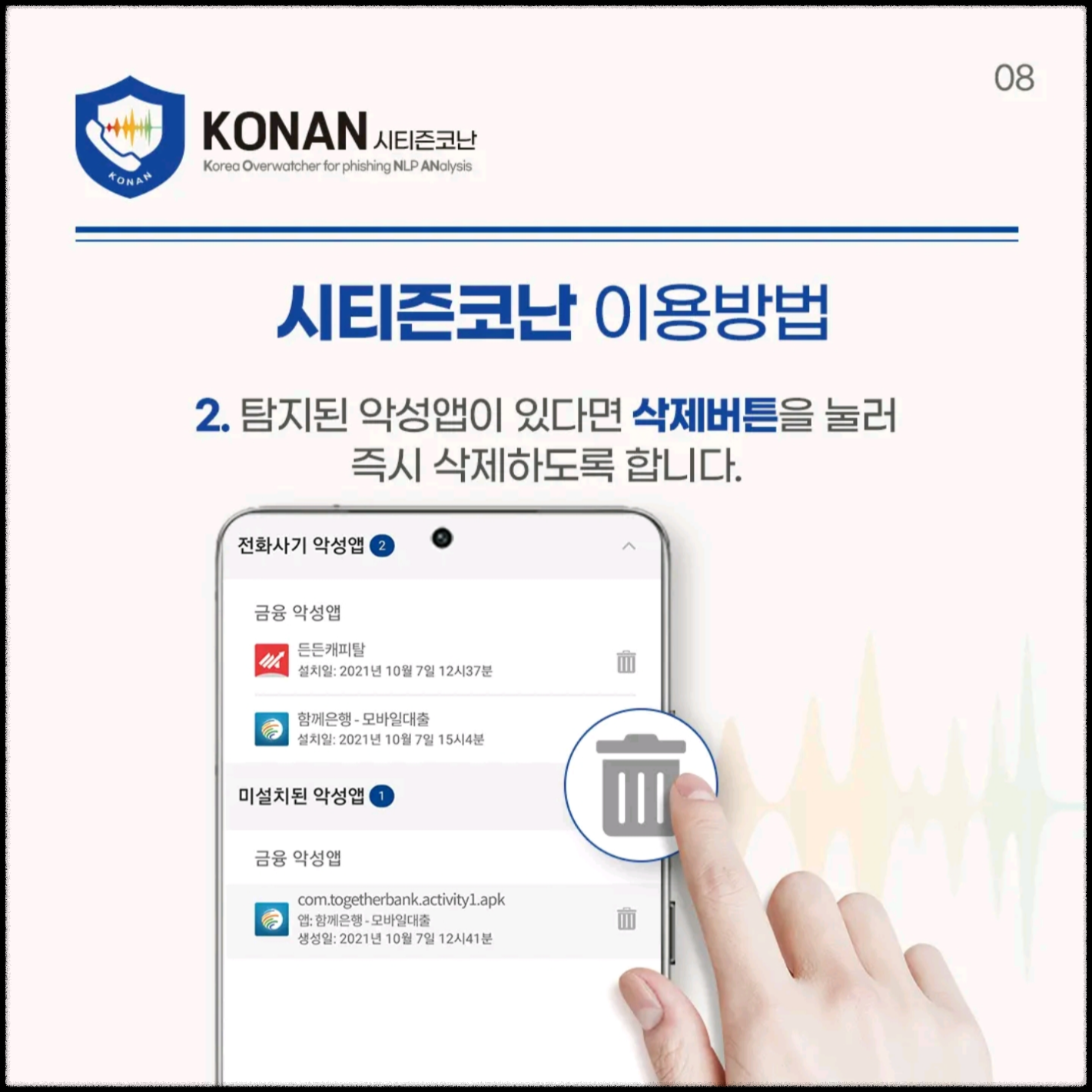 ✅ 악성 앱 탐지: 전화 사기 악성 앱, 원격제어 앱, 출처 불명의 앱 탐지 가능