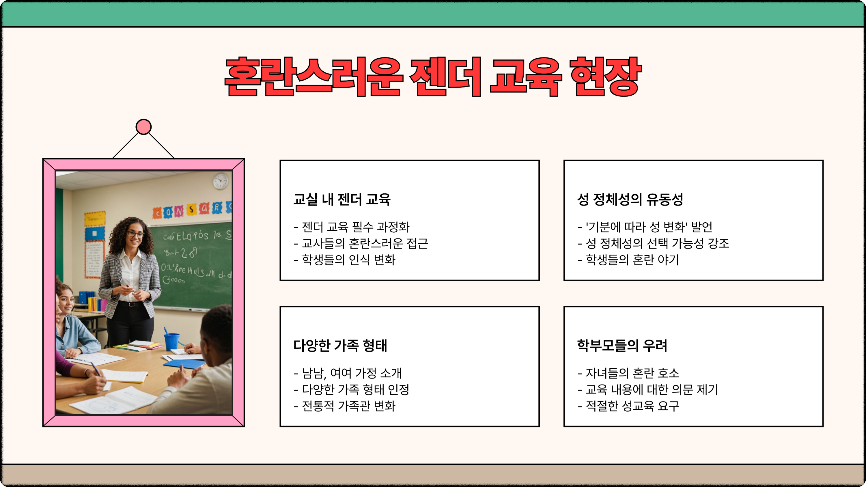 👩‍🏫 실제 수업에서는 "내 기분에 따라 성이 달라질 수 있다"는 발언이 교사 입에서 나오고 있고,