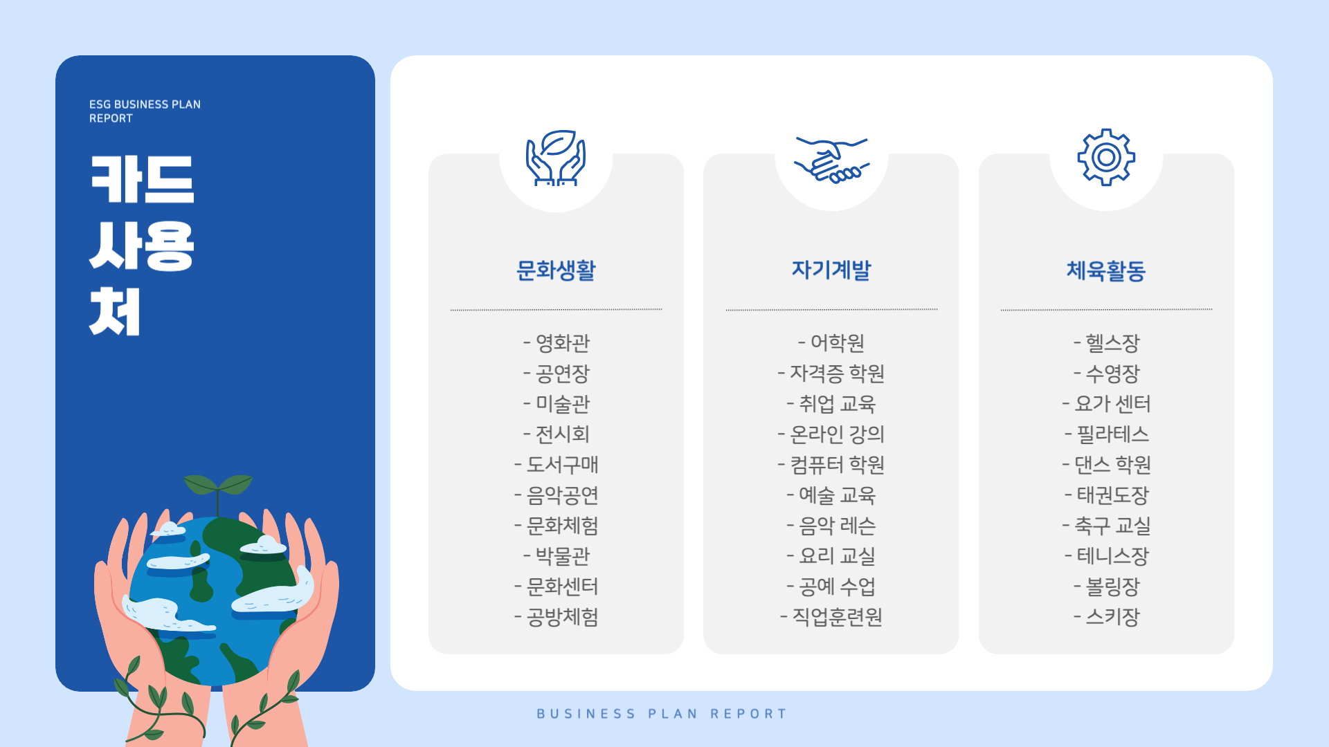 문화생활, 자기계발, 체육활동 등 다양한 업종에서 사용 가능하죠.