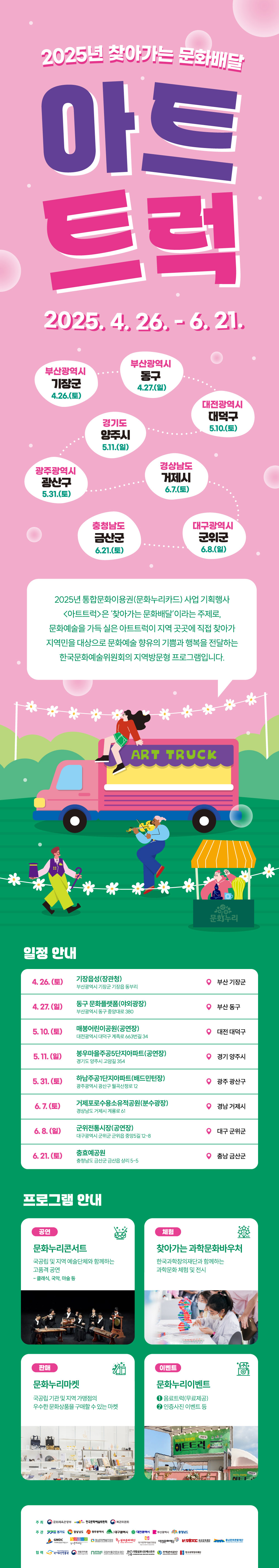 #2025아트트럭 #문화누리카드 #문화배달트럭 #찾아가는공연 #문화체험 #공연이벤트 #문화이동공연 #전국투어 #문화예술행사 #무료공연 #아트트럭일정 #가족나들이 #아이와함께 #주말가볼만한곳 #전국문화행사 #문화체험추천 #공연소식 #예술트럭 #문화이벤트 #주말이벤트