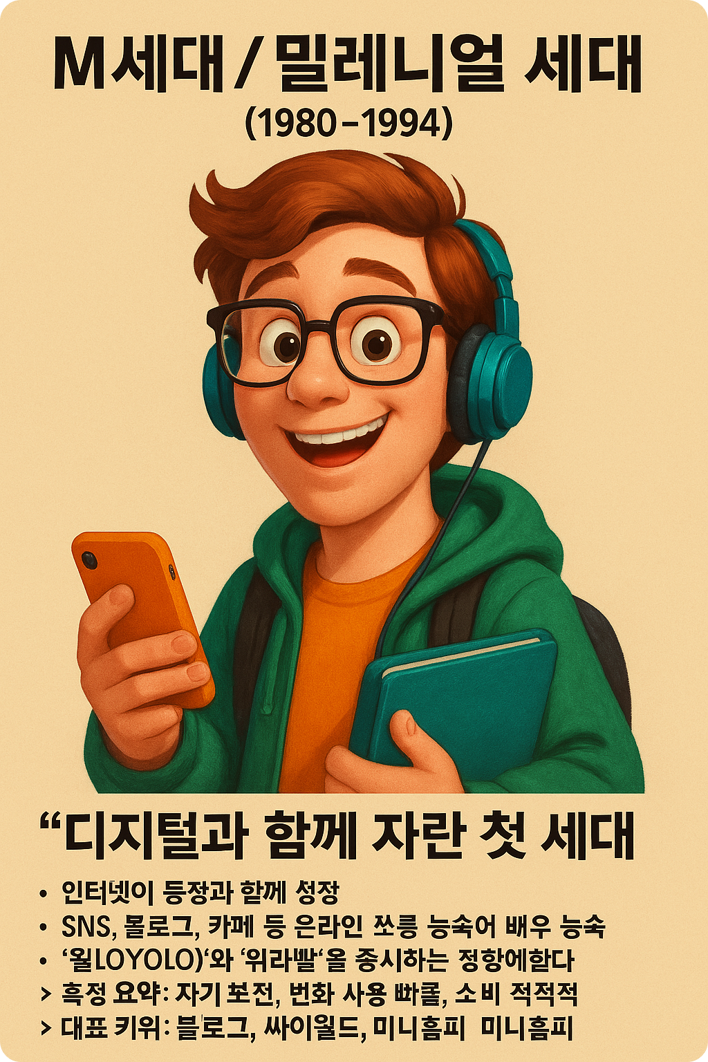 📱 4. M세대 / 밀레니얼 세대 (1980~1994)